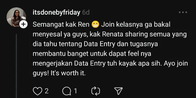 Course Data Entry ini akan disampaikan live melalui Zoom Meeting (link Zoom Meeting nanti akan aku sampaikan di WAG).